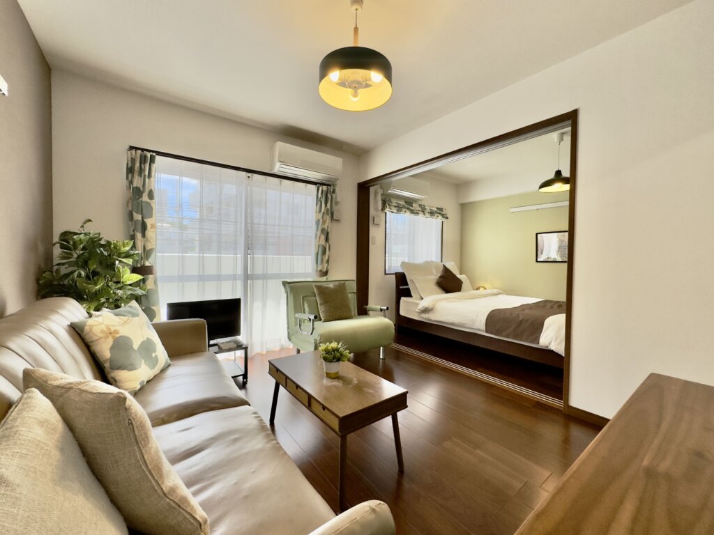 電子レンジ/電気ポット/冷蔵庫/バス/トイレ/冷暖房/テレビ/インターネット接続可能(無料・Wi-Fi)/自動洗濯機/ガス衣類乾燥機/ドライヤー/洗濯洗剤/調理器具一式/食器類一式